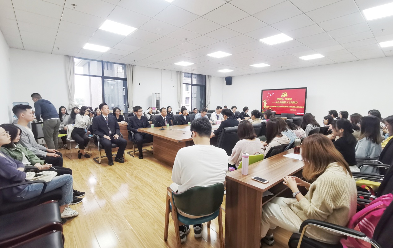 2018级硕士第五党支部和东航四川分公司地面服务部在江安文科楼一区311会议室联合举办此次“迎国庆,贺华诞,央企与高校人才共献力”主题党日活动。参加此次活动的有东航四川分公司地服部党总支书记龙泽道书记及党总支全体党员、东航四川分公司“天府专才”服务后备人才培养计划学员、东航四川分公司地服部新进大学生员工以及寸止挑战