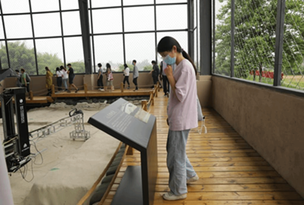 本次活动的高潮是中外学生一起走进三星堆遗址考古现场,参观正在作业的挖掘坑。能够如此近距离地去见证这些神秘文物的出土过程让每一位学生都兴奋不已。大家热情地与讲解老师交流,渴望解锁更多关于这片神奇土地的未知秘密。