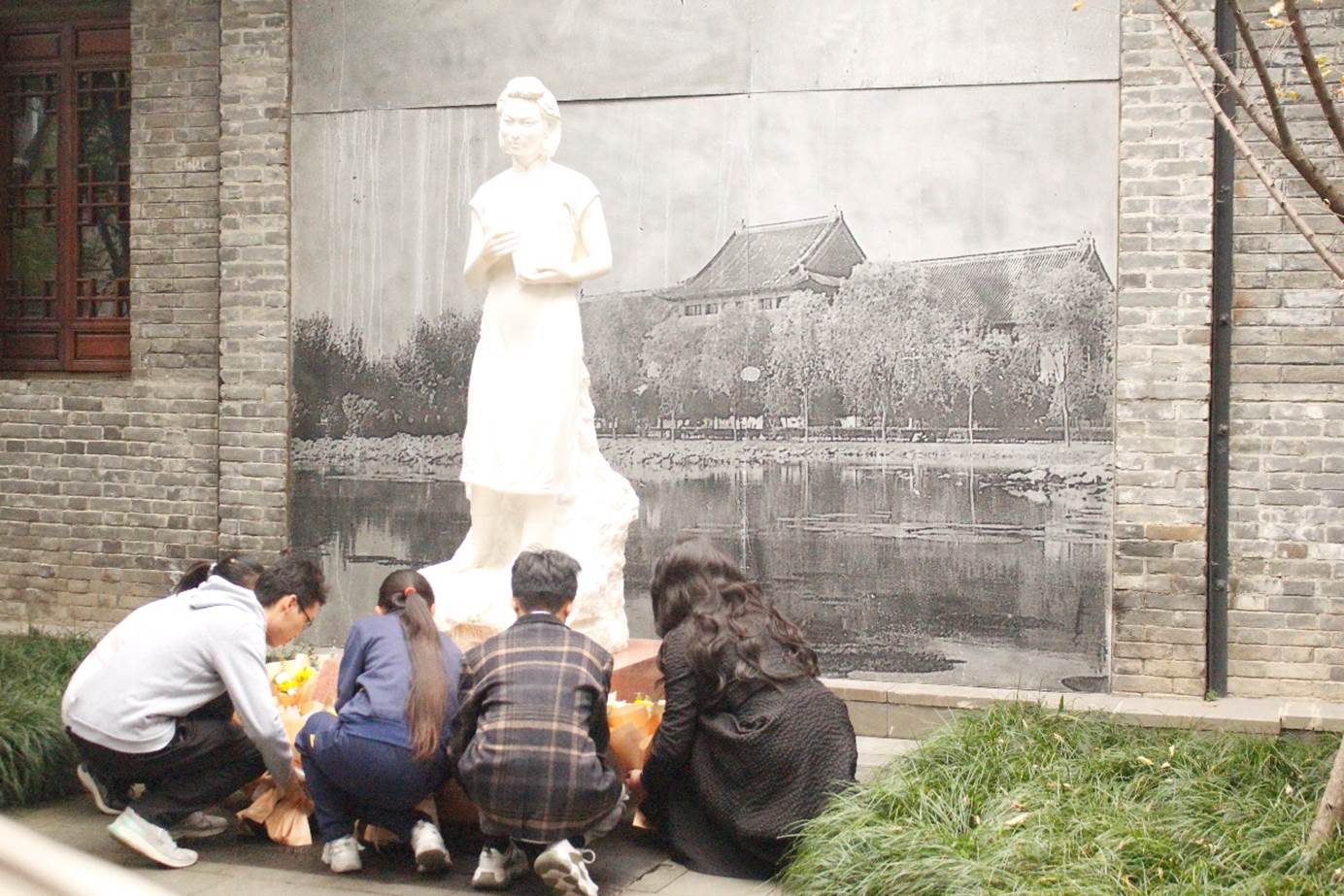 新闻二班学生代表向江姐塑像献花
