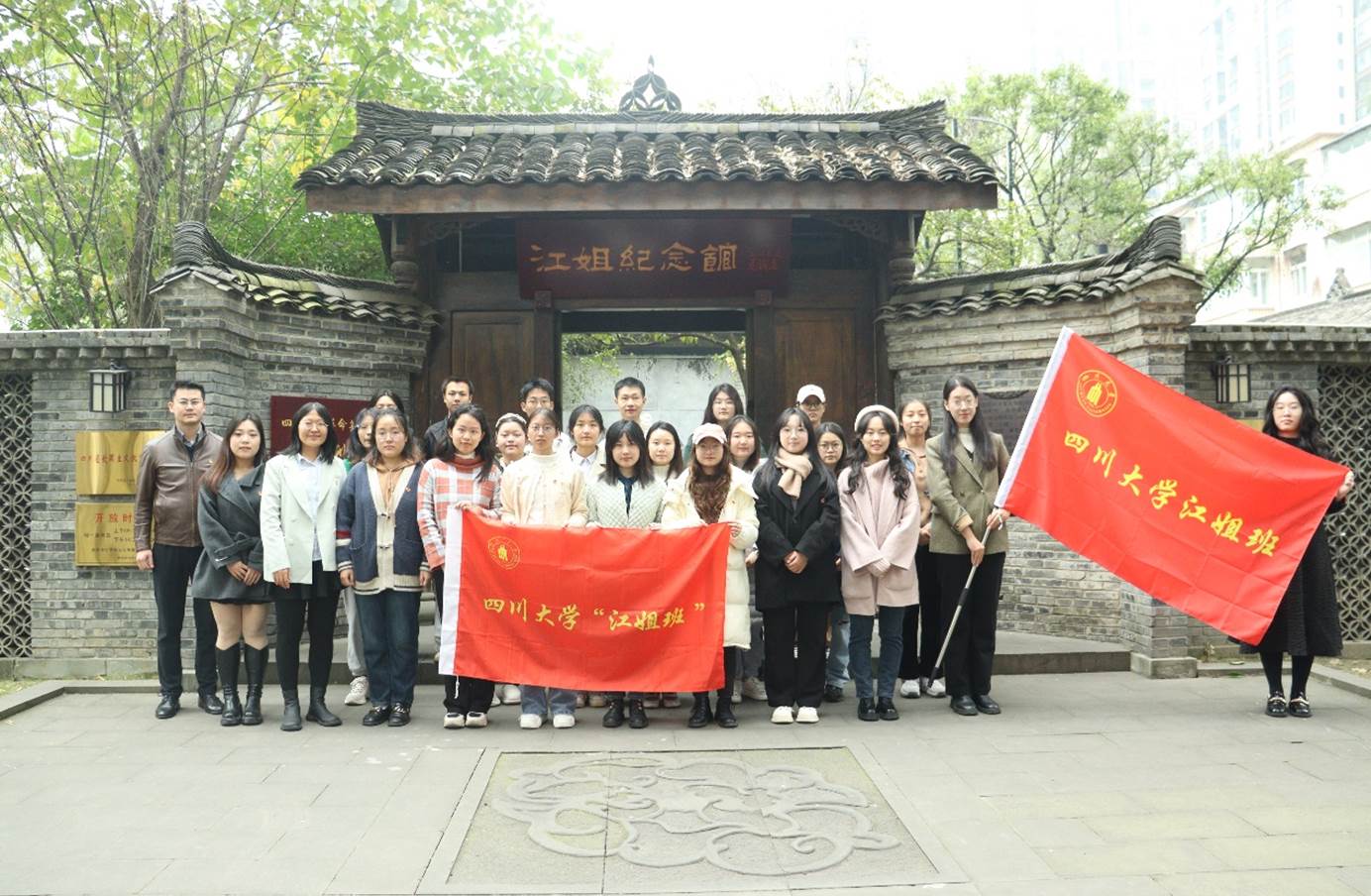 望江校区江姐纪念馆参加新入选“江姐班”授旗仪式暨交流座谈会。校党委副书记李正赤、宣传部、教务处、学工部、研工部、校团委等相关部门负责人,寸止挑战