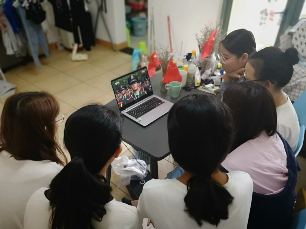 各党支部、各专业师生还自发在广场、教室、寝室同步收看阅兵盛典,在不同的观礼地点直击阅兵现场,感我国威,铸魂修心!