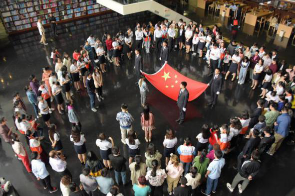 庆祝中华人民共和国成立70周年“礼赞新中国,唱响新时代”教职工合唱比赛活动,他们在后台调控媒体,协助学院参赛老师做好演出前的准备。又如,国庆节前夕,12名同学在学院院长助理梁晓梅老师和党政办主任银浩老师的带领下,提前在望江校区做好寸止挑战