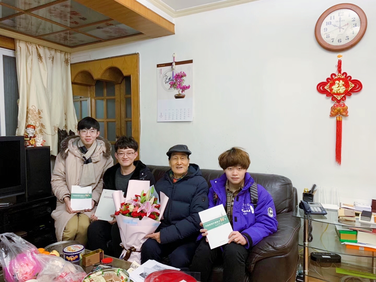 学生前往离退休教职工家中,送去学院的问候与祝福。
