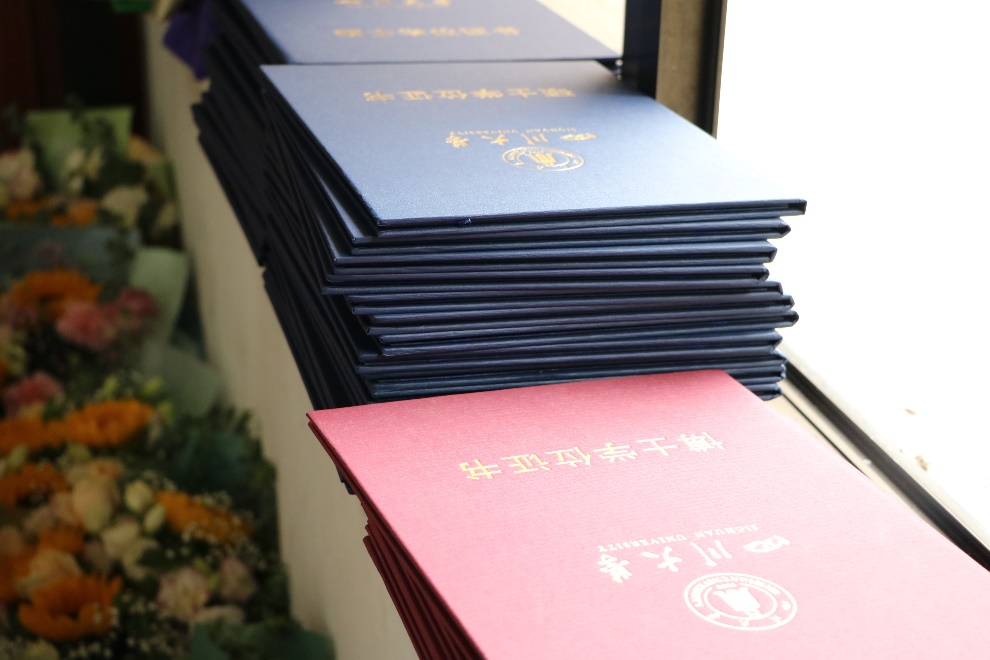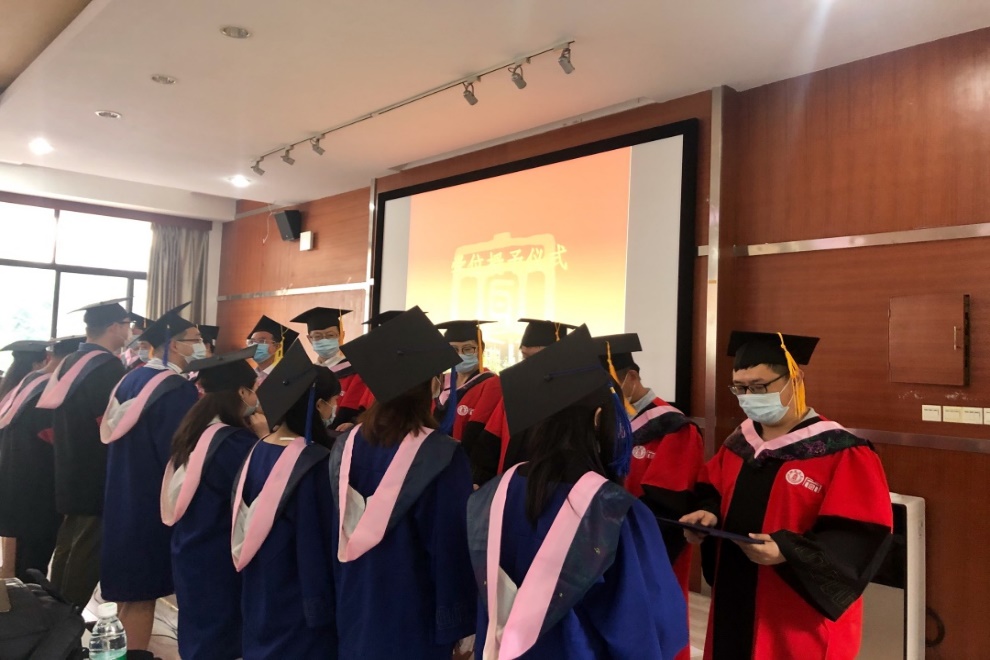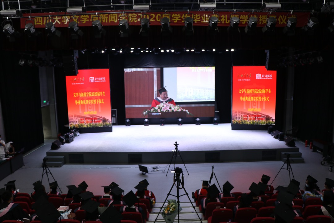 文新学院2020届学生毕业典礼暨学位授予仪式在望江校区举行。江安校区分会场的学院师生通过线上同步直播的形式参加了这场特别的毕业典礼。