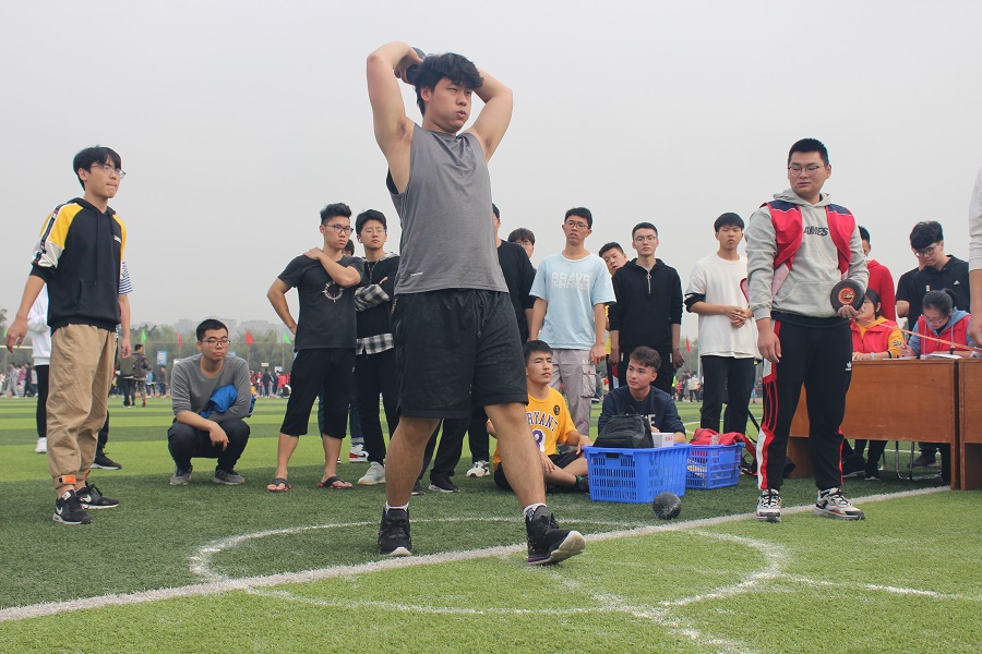 李焱同学在男子实心球比赛现场