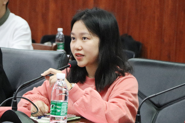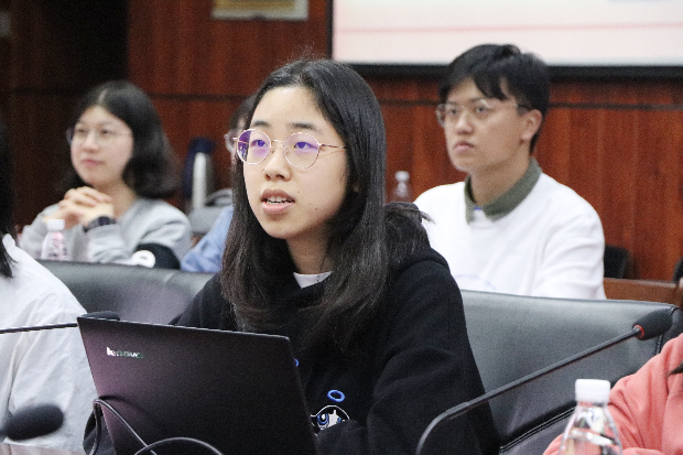 学生电视台和院学生会秘书处的工作经历进行分享,她表示这些经历不仅让她收获了专业技能和友谊,也让她得以带着更高的集体责任感面对如今的班委工作。王曼卿同学则分享了自己的职业生涯规划及对未来发展的思考,她希望自己日后能够继续留在高校进行深入研究,努力实现产学研的结合。