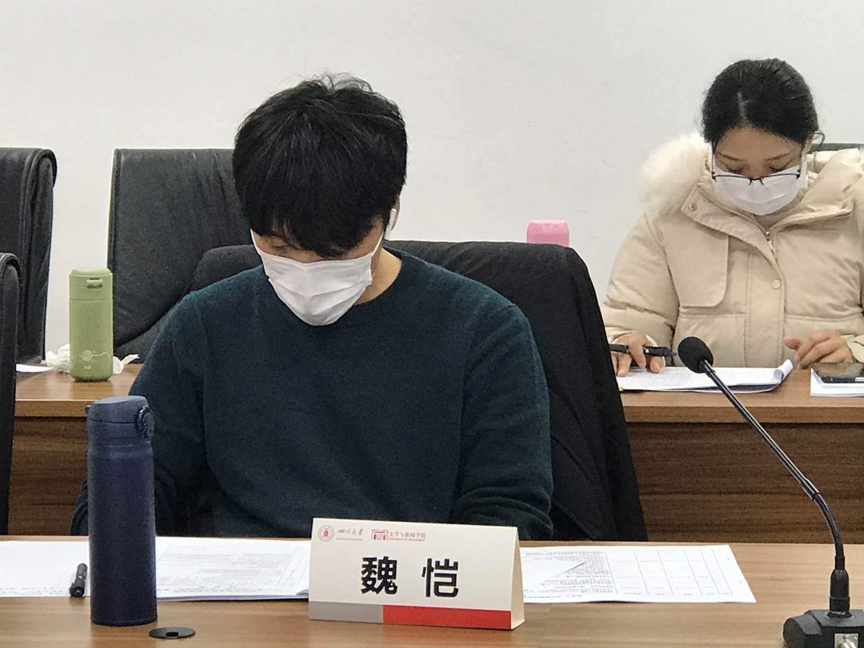 江安校区文科楼一区311会议室举行。遵循学校防疫要求,此次评审会采用“学生线上答辩,评委线下评审”的方式进行。