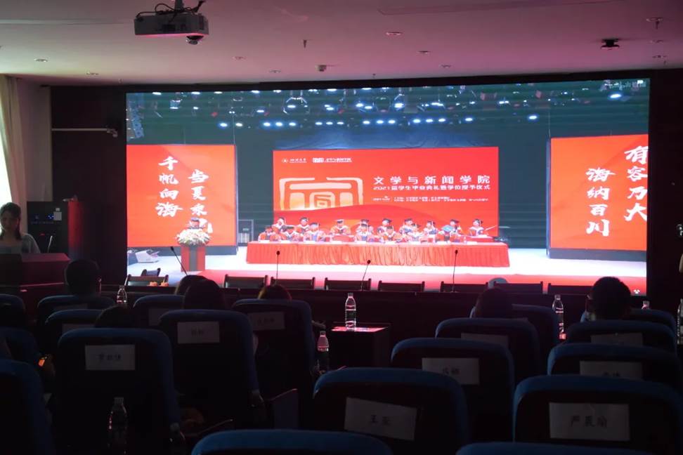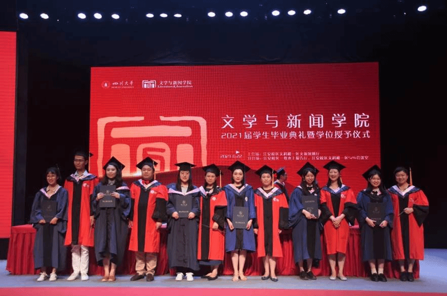 2021届学生毕业典礼暨学位授予仪式在江安校区文科楼一区文新演播厅主会场和江安校区水上报告厅、江安校区文科一区526会议室分会场同步举行。典礼和仪式同步举行线上直播,2021届毕业生亲友共同参与线上观礼。