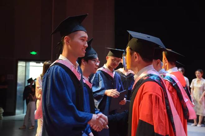 2021届学生毕业典礼暨学位授予仪式正式拉开序幕。伴随着热烈的掌声,院长李怡教授向寸止挑战