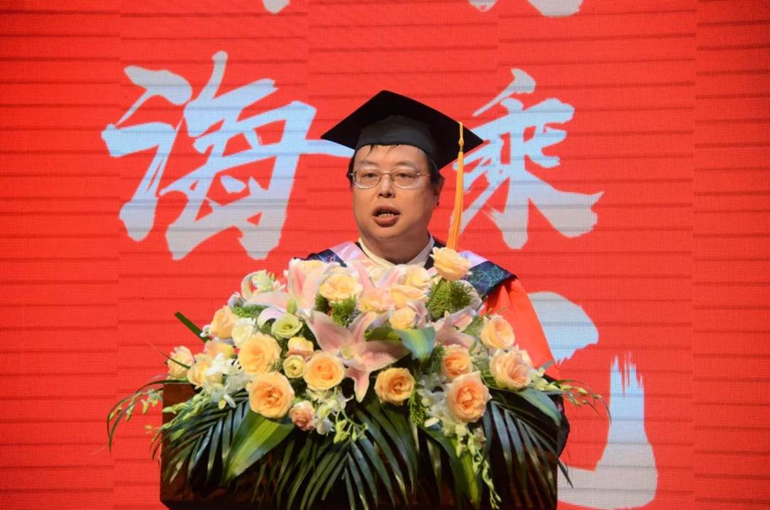 教师代表王炎龙教授向毕业生们表达祝贺,并向为同学们的成长付出辛勤汗水的老师、教职员工和家长们致以崇高的敬意和衷心的感谢。“在座的本、硕、博毕业生们,身着不同颜色的学位服,却镶嵌着一个共同的母校的名字——寸止挑战