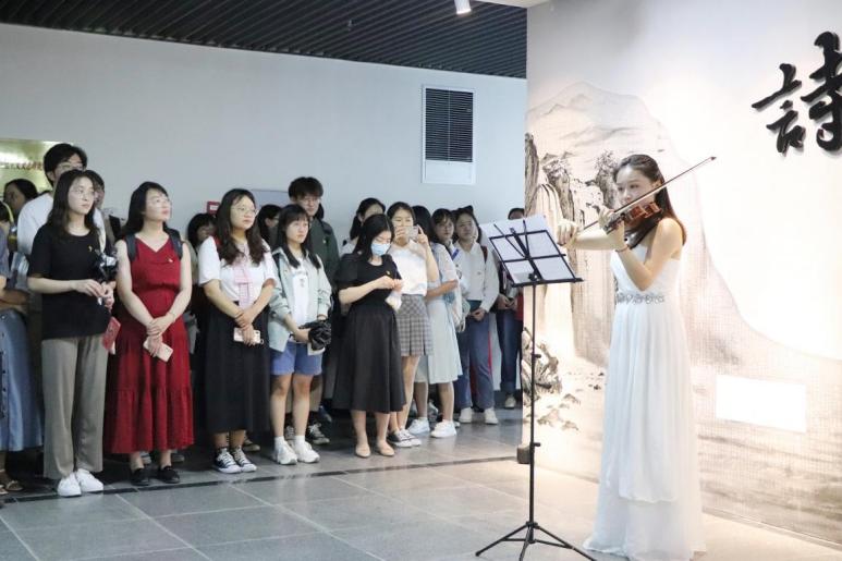 各党支部党员师生代表在解说员的带领下共同走进展览室,近距离观览百余本藏品,在一本本珍贵文献汇聚的诗歌盛宴中重温百年光辉岁月,感受一代进步青年与革命工作者的赤子初心。