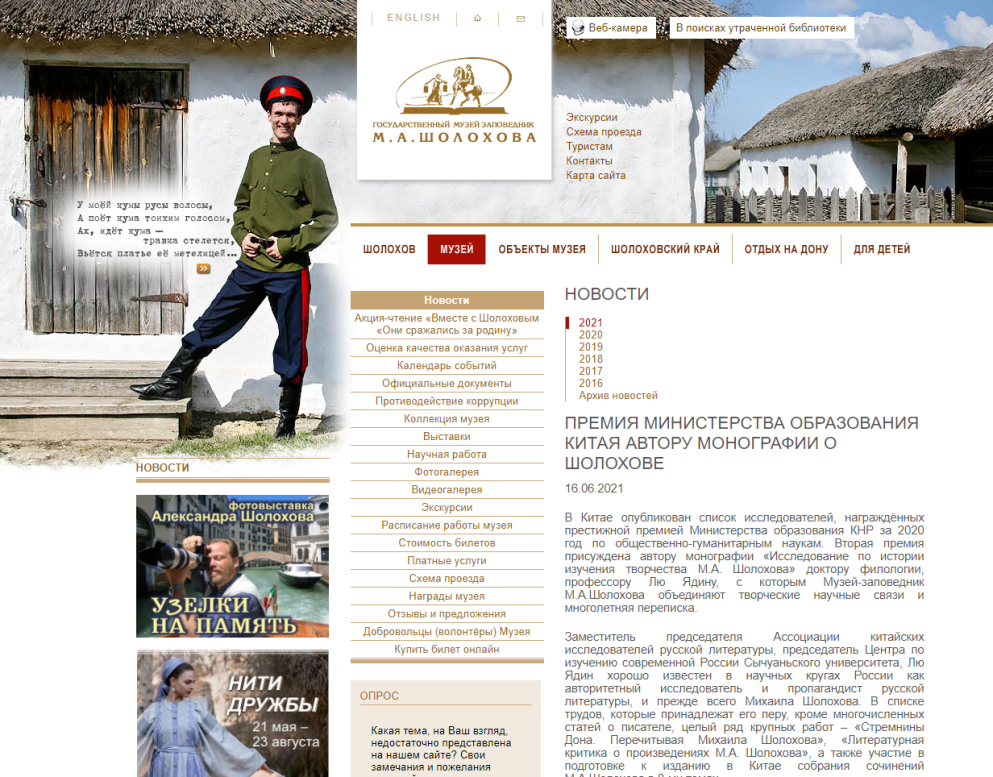 俄罗斯国立肖洛霍夫故居博物院官网新闻