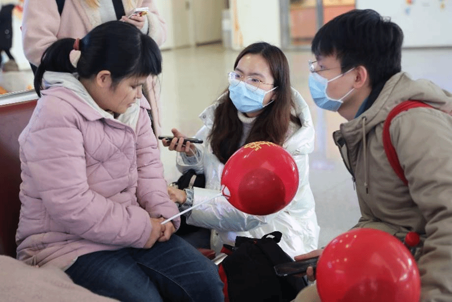 的师生代表在副院长操慧教授的带领下走进成都东客站,深入春运一线。探站台、乘列车、访旅客…… 一天时间里,一处处细节、一个个工种、一幕幕场景展现在师生眼前,共同绘制出疫情下的春运图景,为我们讲述凝结在民众出行背后的幸福感与获得感。