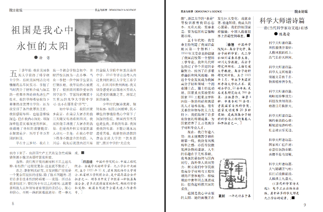 高分子学科走过七十载,真正实现了徐僖院士“我们的祖国富裕强盛,中国人在世界上普遍受到尊重”的心愿。