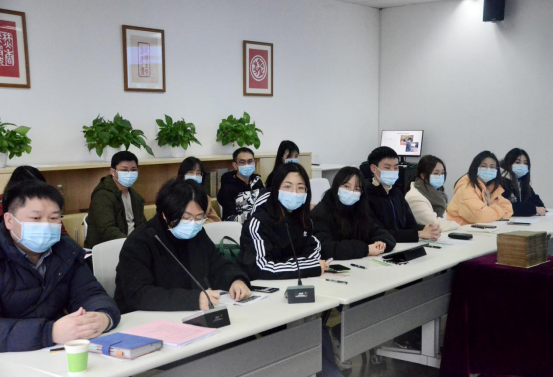 胡宗怡同学首先分享了自己在过去一年的思想政治学习中的感悟。她表示,思政学习和专业学习一样,都应该避免“放一放”、“等靠要”的思想,中文专业学子应该锤炼过硬本领,学以致用,把中华文化传递出去。马宇驰同学分享了去年以来的科研学习感受。他说,上学期在学院组织的“第一届本科生创新拔尖人才学术论坛”中,学院老师的辅导指正给予了同学们很大帮助,在论文修改、会议报告中,同学们收获了学术经验,锻炼了表达能力。
