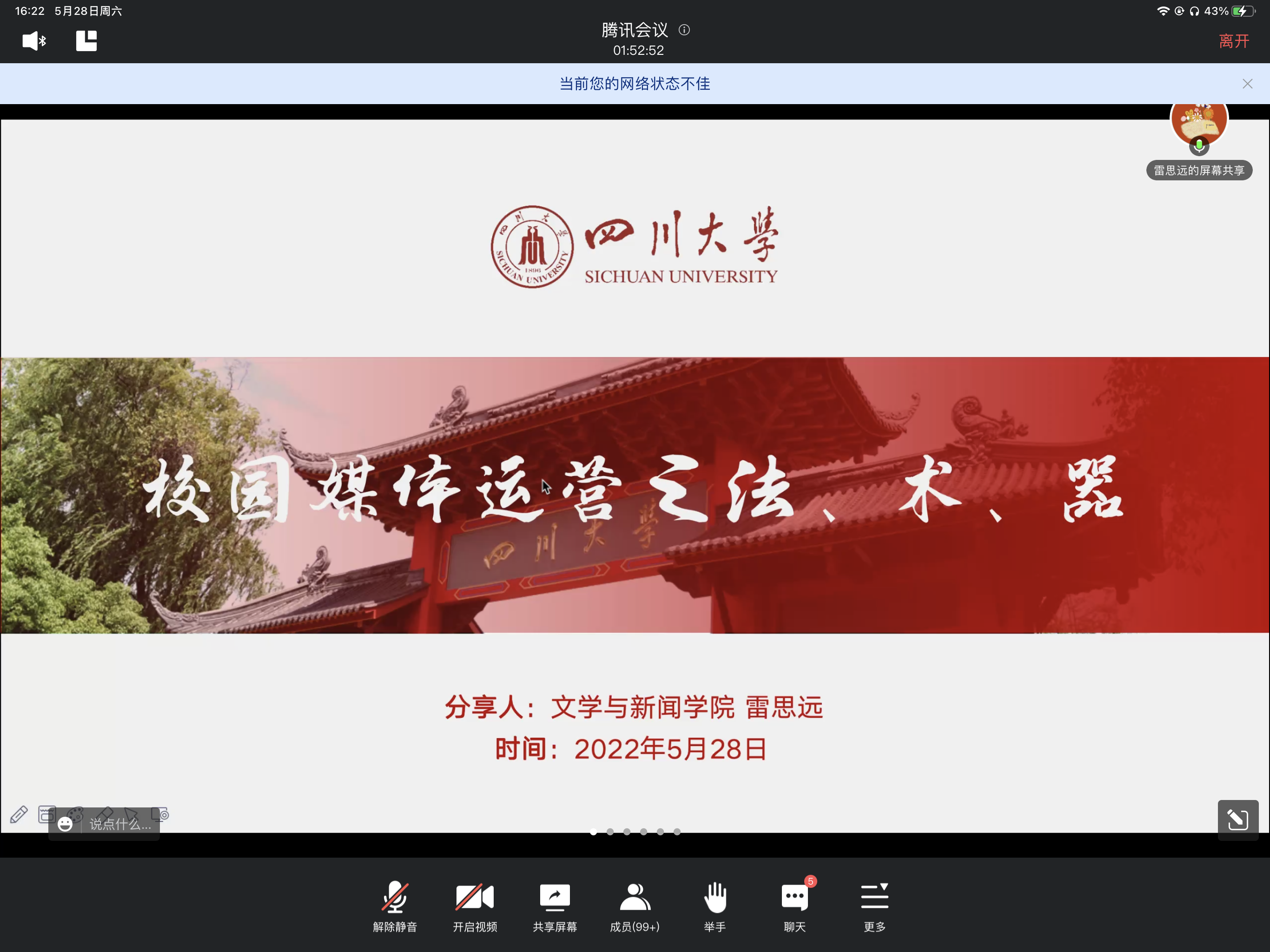 2020级传播学硕士生雷思远分享校园媒体运营经验