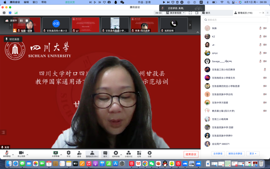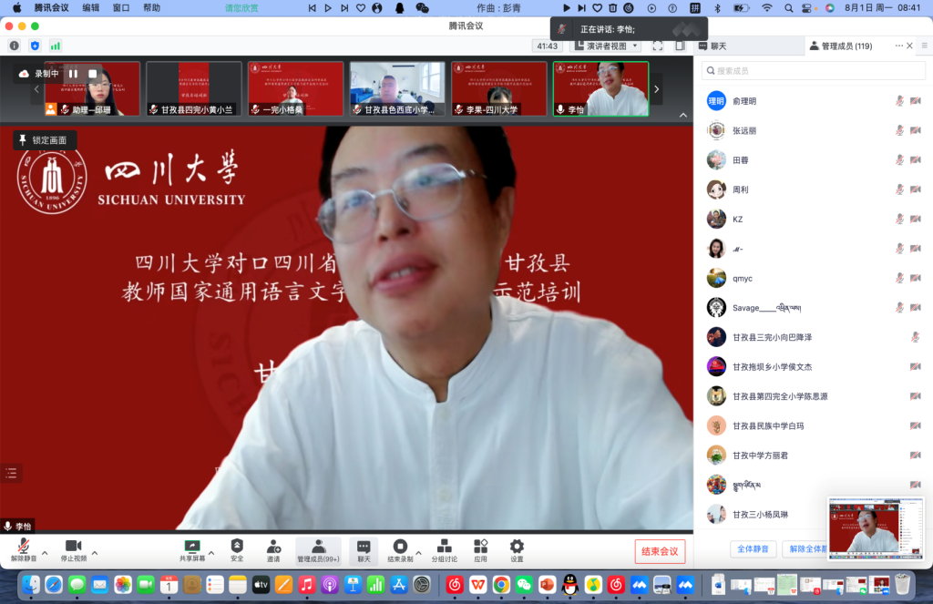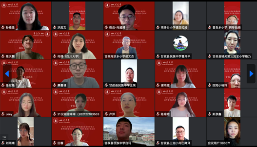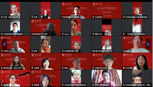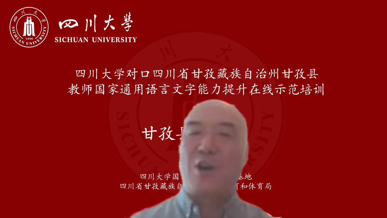 国家语言文字推广基地对口四川省甘孜藏族自治州甘孜县教师国家通用语言文字能力提升在线示范培训举行了线上开班典礼。出席此次典礼的嘉宾有我校人事处处长、国家语言文字推广基地常务副主任、语言文字工作委员会办公室主任吴尧教授,语言文字工作委员会办公室副主任朱莉老师,寸止挑战