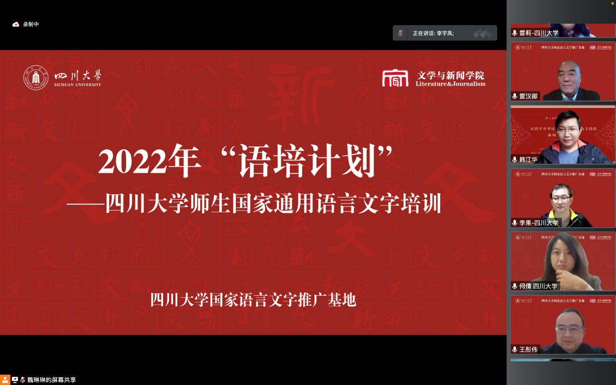我校国家语言文字推广基地联合举办2022年“语培计划”川大师生国家通用语言文字培训会