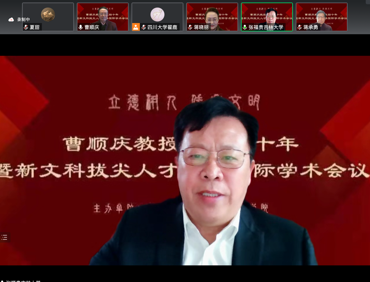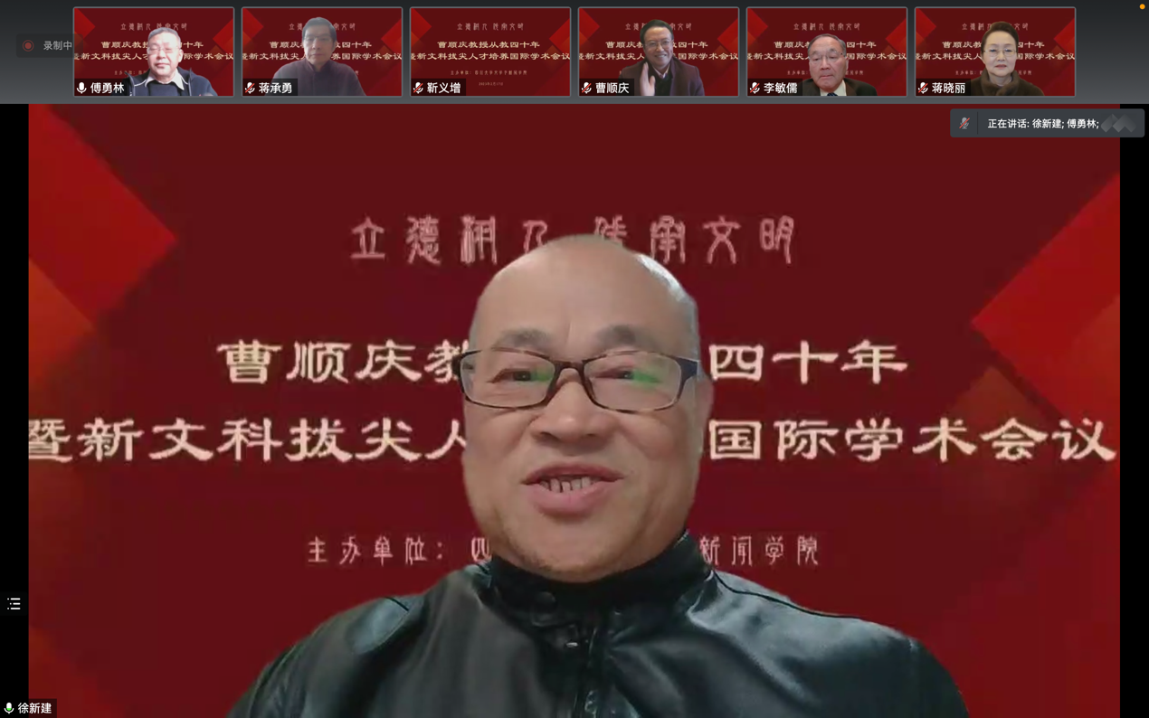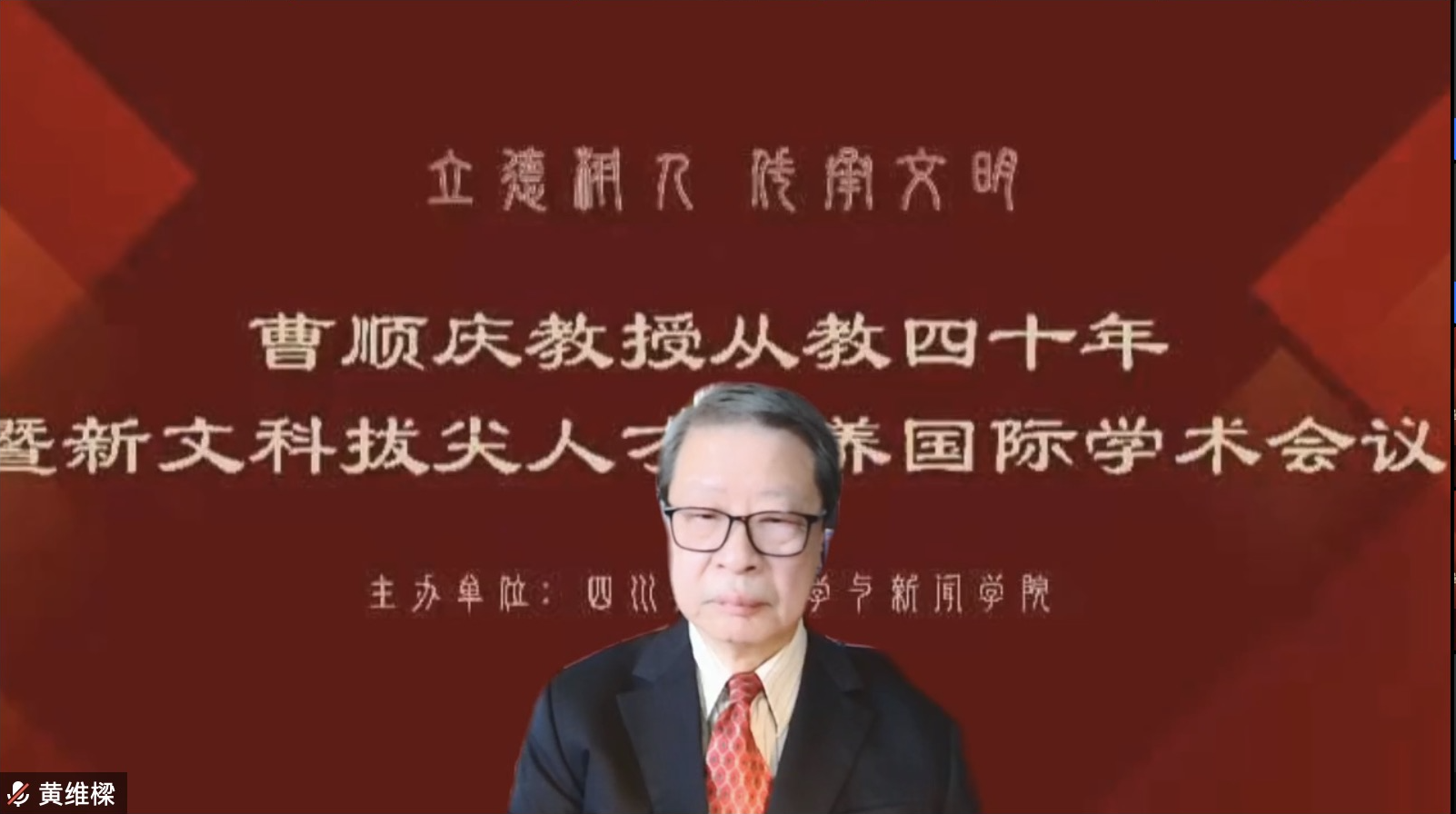 校长李言荣院士在视频致辞中表示,培养人才和创造知识是一所大学的根和本,这两大责任和使命都离不开一流的师资队伍来支撑。曹顺庆教授不仅教书育人,也言传身教,视学术为生命、以育人为己任,耕耘不辍、孜孜不倦,在学术领域成就卓著、享誉国际,在拔尖人才培养方面更是桃李芬芳,他的品格与情怀足以成为川大后学的精神财富和激励大家“立德树人 传承文明”的宝贵经验。