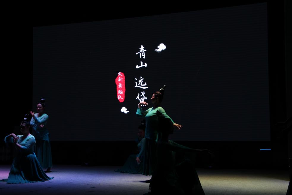 舞蹈队的同学表演了舞蹈《青山远黛》,青衫曼舞,以肢体与音乐将嘉宾与同学们引入更为悠远的诗境当中。