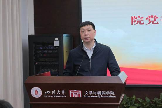 古立峰书记强调要加强组织领导,压紧压实责任,加强督促指导,加强两抓两促,务求取得实效,加强宣传阐释,以主题教育为契机,扎扎实实“学思想、强党性、重实践、建新功”,奋力推动学院各项工作再上新台阶、开创新局面,为全面建设社会主义现代化国家、全面推进中华民族伟大复兴贡献“川大文新力量”。