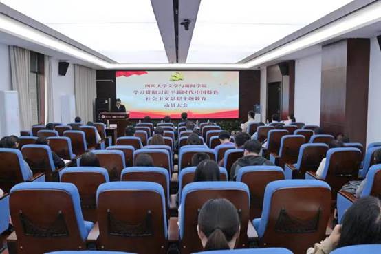 在江安校区文科楼一区526会议室召开学习贯彻习近平新时代中国特色社会主义思想主题教育动员大会。学院党委书记古立峰作动员讲话。学校第四指导组组长王素霞同志讲话。学院副院长胡易容主持大会。全体院领导、两委委员、师生党支部书记及师生代表共同参会。