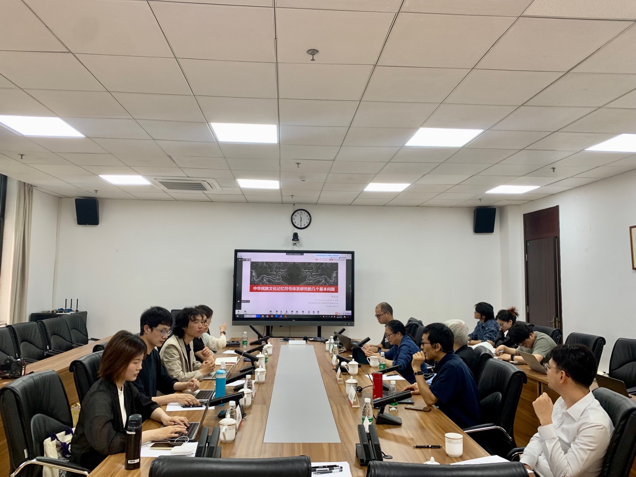 副院长胡易容教授从纵向时间、横向广域角度提出,建设中华民族记忆符号库,要重视经典符号的典范性价值,建议从符号史、器物史、思想史层面,做有思想的符号记忆库。宋耀研究员则采用多媒体交互方式,为来访专家演示运用pycharm等数据软件对绘画等文本中的符号进行提取并研究其语义表征模型与演化规律的相关案例。