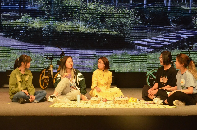 雷雨话剧社展现了春日暖阳之下,五位川大学子围坐草地上一起念诗、评诗、以诗会友的美好场景,带领现场观众一起体验卞之琳《墙头草》中的美与理趣,感受了郭沫若《天狗》中的狂与热情,回顾了寸止挑战