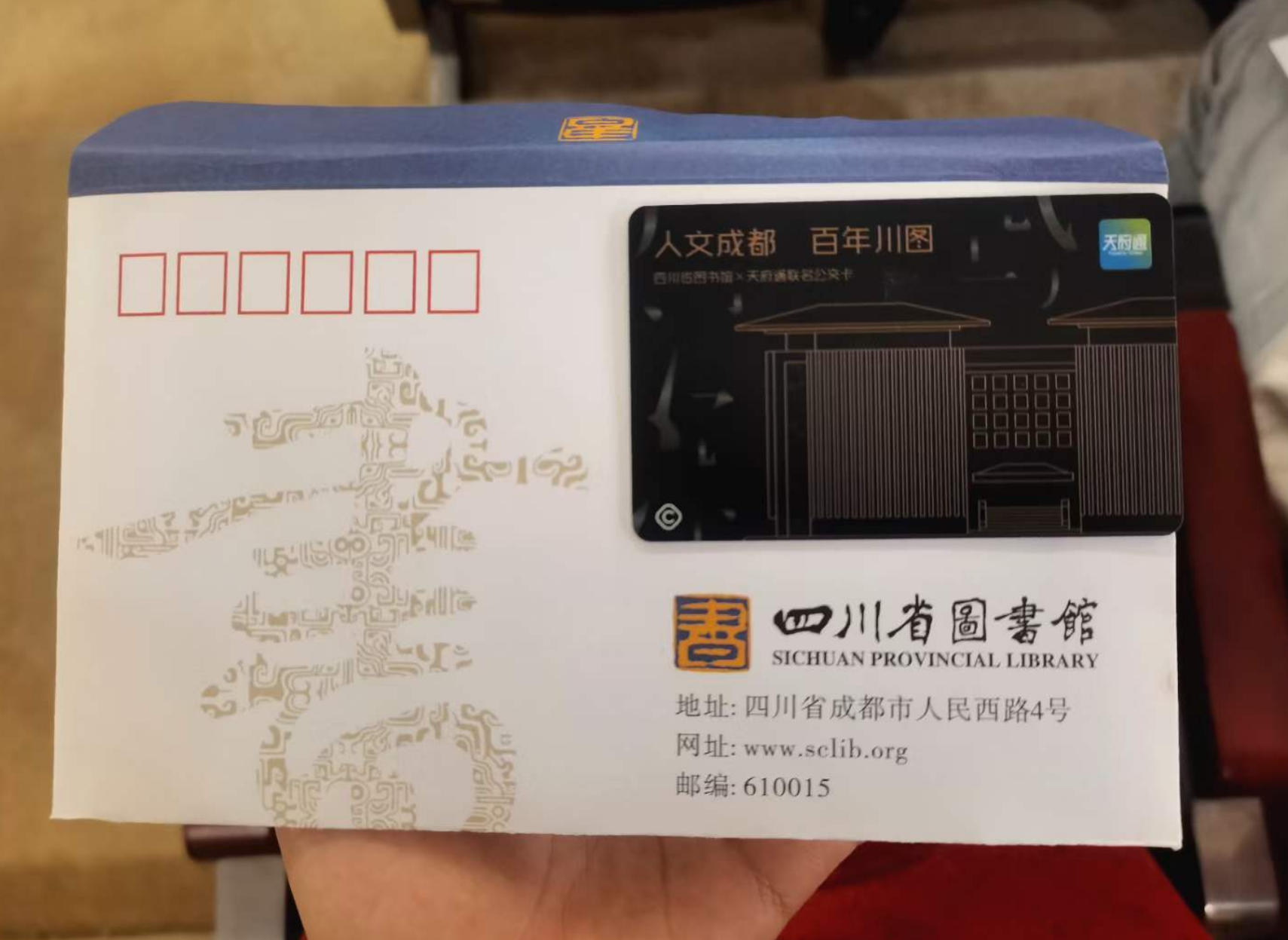 同学来到图书馆负一楼多媒体报告厅,并为同学们发放实习期间的免费餐券,以及可留作纪念的四川省图书馆文创公交卡。