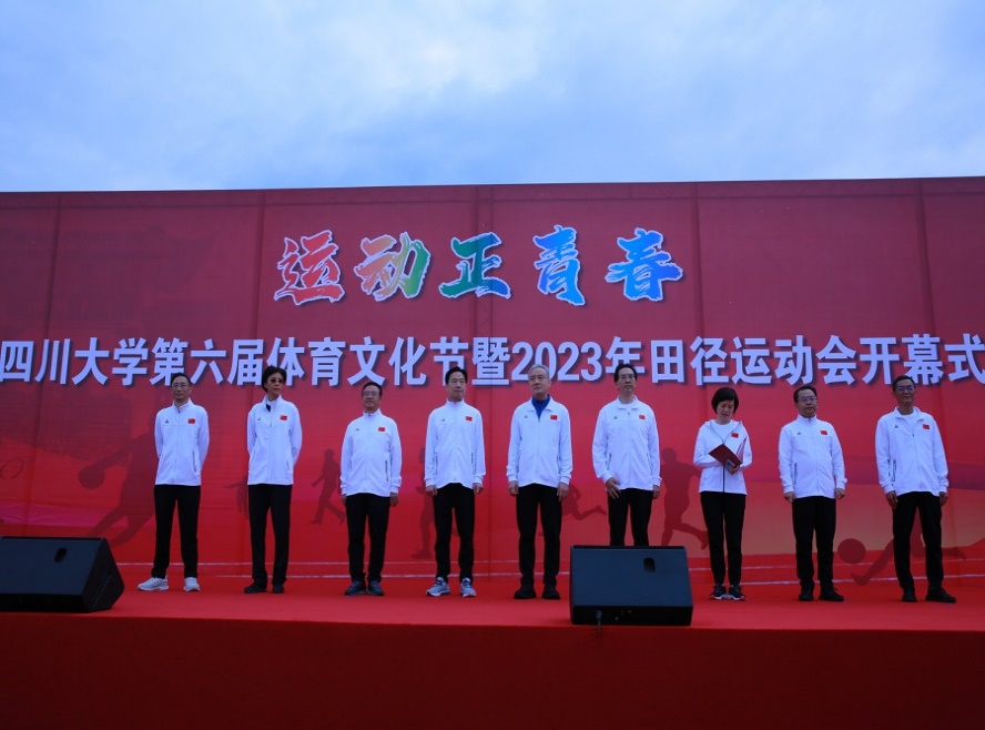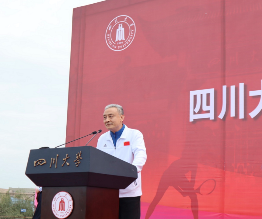 体育工作表彰决定,她勉励全校师生积极加强体育锻炼,自觉弘扬体育运动精神,为建设中国特色世界一流大学作出新贡献。随后,我校游泳队队长、第21届全国大学生游泳锦标赛400m混合泳冠军王颜青同学与CDA联赛冠军获得者、我校体育学院孟达老师分别代表全体运动员与裁判员进行了宣誓。我校校长汪劲松的讲话将现场的氛围推向高潮。最后,我校党委书记甘霖宣布运动会开幕。在热身后,校领导、杰出教授、朱玲校友,及各单位负责同志带领师生运动员们从江安二号体育场出发进行健身跑,老师和同学们用充满活力的步伐点燃了现场的运动激情,揭开了运动会序幕。