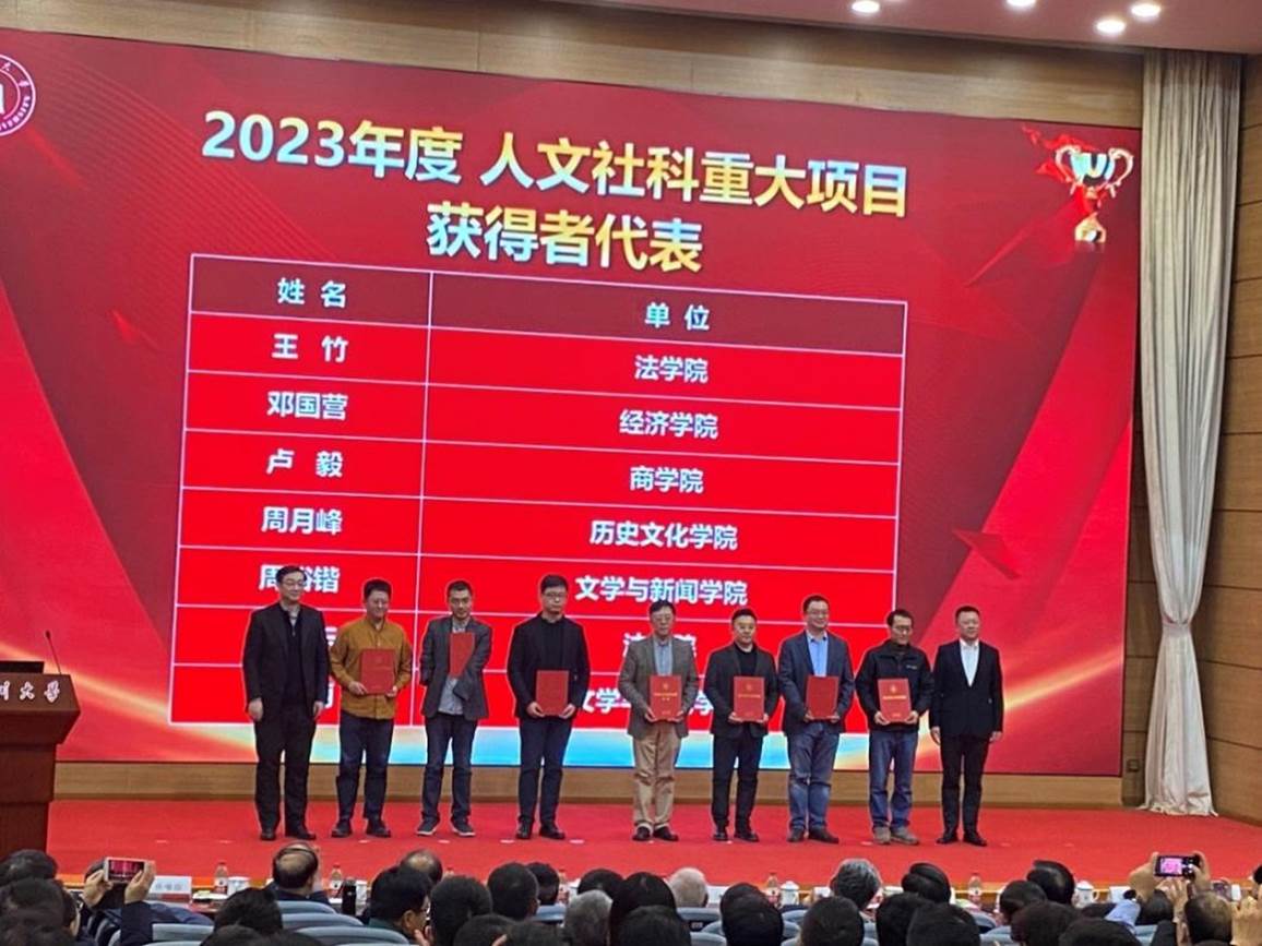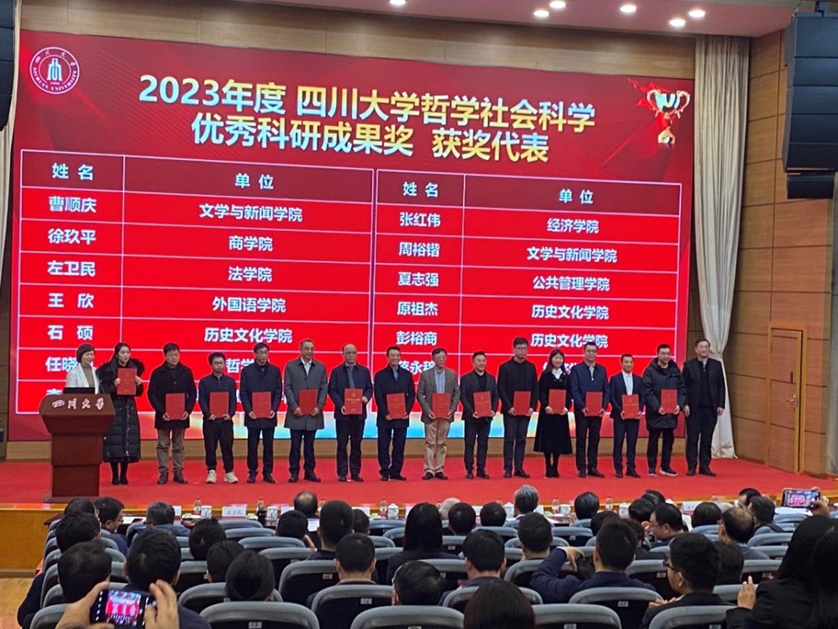 2023年学院科研工作取得佳绩:获得国家社科基金面上项目立项数12,在全校各文科院(系)排名第一;获国家社科基金各类项目立项数17,在全校各文科院(系)排名第一;到校科研经费到校在全校各文科院(系)排名第二。学院蒋晓丽教授、周裕锴教授获2023年度国家社科基金重大项目;曹顺庆教授、周裕锴教授获2023年度寸止挑战 哲学社会科学优秀科研成果奖;曾玉洁老师获科研管理先进个人奖。