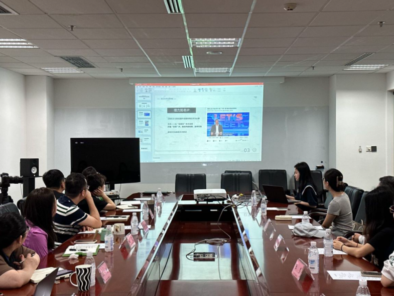 侯洪教授领衔的研究团队来到四川卫视《熊猫观察》栏目组进行实地考察与调研。在四川卫视的会议室川大师生与频道总监蔡舟承和副总监白夏及《熊猫观察》主创人员就如何进一步提升节目的国际传播力和跨文化传播力展开了深度的交流与讨论。本次调研是侯洪教授团队承担的课题《中国电视对外传播与跨文化传播的创新品牌:<熊猫观察>节目的创意与媒介创新实践之探索》与业界联合发起的教研活动[项目编号为ZT-231061035,获批教育部“主题案例(走出去)”研究的立项]。