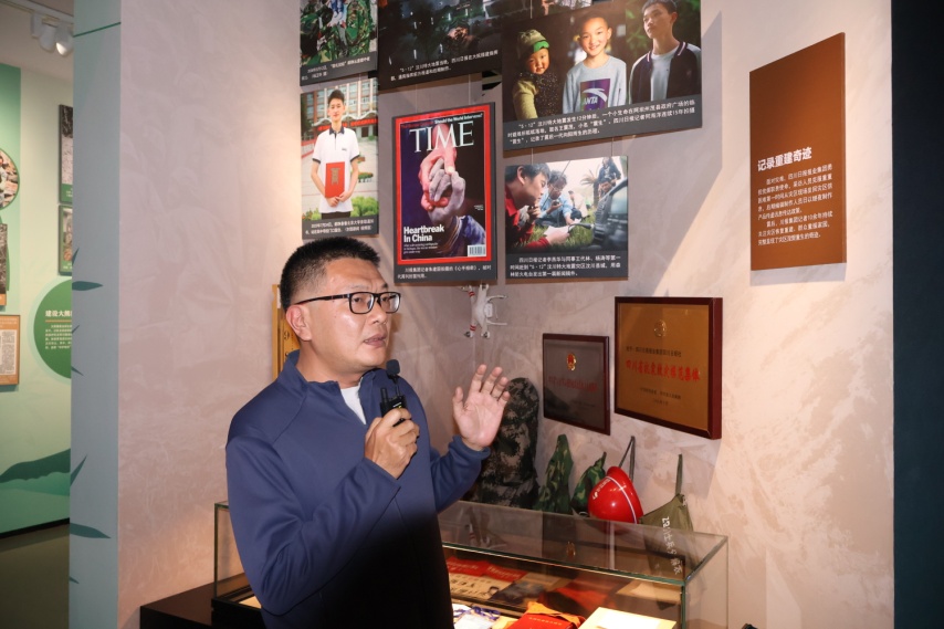 四位中国新闻奖获奖记者代表在馆内讲解