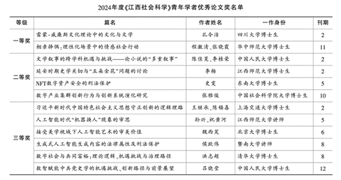 2024年度《江西社会科学》青年学者优秀论文获奖名单