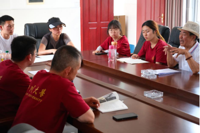 7月16日下午,团队在镇政府会议室与甘洛县原文联主席李靖忠老师、镇旅游讲解员等就海棠镇乡村旅游开发、景点讲解词撰写等问题展开座谈。李靖忠老师作为土生土长的海棠人,分享自己与川大的缘分,向团队赠送出版的书籍《海棠古镇》,他表示愿意不遗余力地为同学们写好海棠故事提供素材。