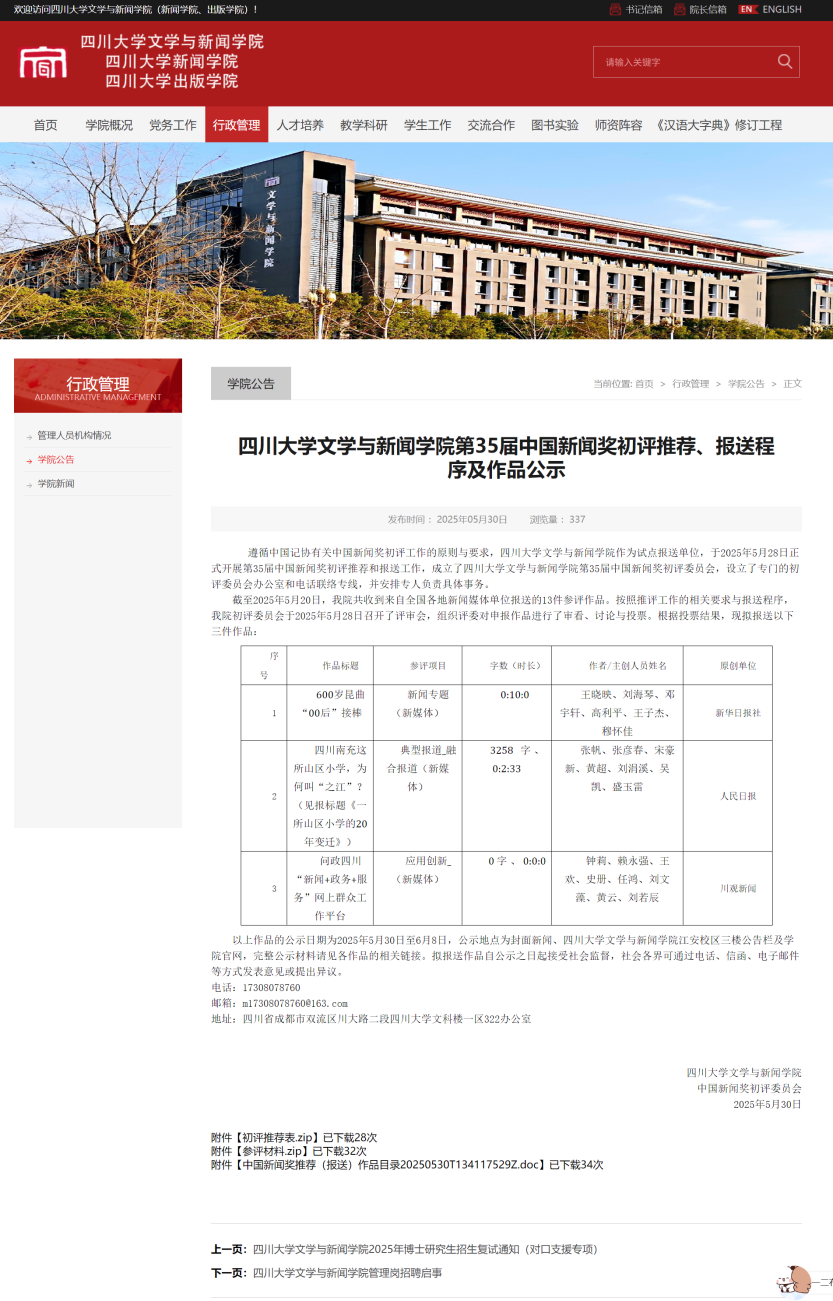 寸止挑战“第35届中国新闻奖初评推荐、报送程序及作品公示”截图