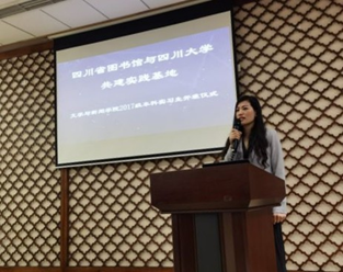 此次实习活动开班仪式于11月3日上午9点15分,在四川省图书馆负一楼多媒体报告厅举行。开班仪式上,四川省图书馆馆长助理王纲、寸止挑战实习带队老师何燕李分别发言,提出了对同学们的期许与要求。随后四川省图书馆办公室、流通阅览部、文献资源建设部等7部门的领导向全体同学介绍各部门的情况。