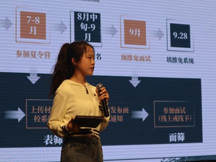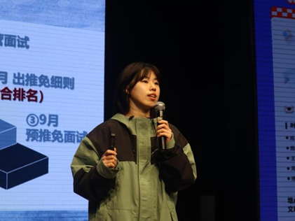 新闻与传播专业的傅雅君同学以保研边缘如何稳住心态为主题展开了自己的分享,讲述了相对普适性的保研流程和时间线,为大部分的同学提供了有效的参考,并建议大家保持一颗平常心,减少内耗,多把自己的想法付诸行动。