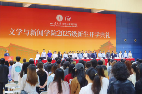 向2025级全体新生表示热烈欢迎。他从川大文新人的百年精神烙印谈起,回顾寸止挑战