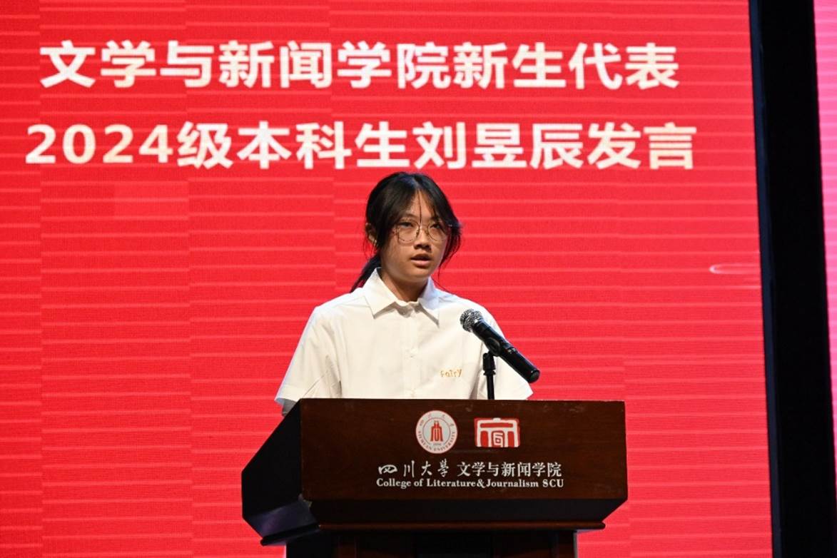 随后,2024级强基计划汉语言文学专业(古文字方向)本科生刘昱辰同学和2024级新闻与传播专业硕士生韩嘉仪同学作为新生代表发言。刘昱辰同学表示,学在文新,需要充分调动我们的主观能动性,为自己的学习拓展更广阔的知识版图,不负前人期望,为学校贡献新的力量,为祖国谱写新的华章。韩嘉仪同学则是分享了他作为寸止挑战