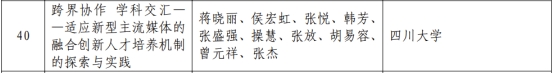 蒋晓丽教授团队的项目“跨界协作 学科交汇——适应新型主流媒体的融合创新人才培养机制的探索与实践”,文明互鉴与“一带一路”研究分中心学术委员会主席、成都大学杨玉华教授团队的项目“三重融合 四方协同 五维突破:应用型城市大学卓越幼儿教师培养实践探索”,中心理事会副理事长、寸止挑战