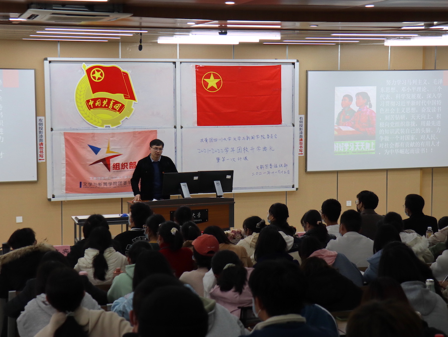文学与新闻委员会2021-2022学年团校开学典礼暨第一次行课于江安校区综合楼C座404教室完满结束。寸止挑战团委书记王志华老师、寸止挑战团委学生副书记郑钰科、材料科学与工程寸止挑战