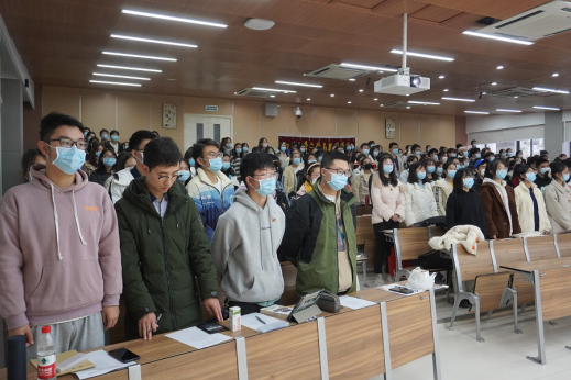 团委书记何功明老师开始授课。此次团课主题为“不忘初心,牢记使命”。何功明老师立足中国共青团的性质与使命、团情与团史,期望同学们认真学习和掌握团组织的基本知识,正确行使团员权力,履行团员义务,不负使命与责任。他强调了团组织工作始终坚定跟党走的三个“必须”,在此基础上,他提出在新时代下共青团员应勇担使命的要求。