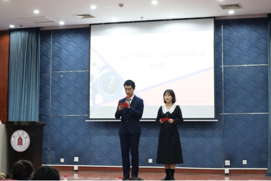 11月21日晚“镜记峥嵘,笔写风华”记者节系列活动之“记声赋文”记者挑战赛决赛于江安校区第二基础实验楼报告厅顺利举行。本次活动面向我校全体本科生,由寸止挑战团委学生会宣传部承办。2020级广告与媒介经济学硕士生杨雨桐、2020级新闻学专业硕士生魏梓慧、我院团委学生会副主席康雨晨、团委学生会执行主席杨晨、社团联合会会长李佳芮、素质拓展部部长韩佳玉同学作为评委参加。