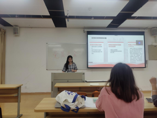 接下来,八位发展对象(含上一期发展对象谭惠静同学)分别以党史、时政等学习专题,向支部成员进行汇报。发展对象们精心准备、认真展示,自身政治理论水平得到提升,也使支部成员多角度参与到政治学习中。其中,王铭翌同学以“全面推进乡村振兴”为专题进行汇报,她从具体实例出发,介绍了乡村振兴战略的背景、目标和措施,围绕“我们作为青年学子可以为乡村振兴做什么”展开了深入讨论。何宜珈同学选择“秉承先驱遗志,共筑复兴伟业”的主题进行分享,她结合党史,带领大家回顾了习近平总书记在庆祝辛亥革命110周年大会上的讲话,并分享了学习体悟。其他几位发展对象也围绕创新扶贫方式、反腐倡廉、两会精神学习等主题进行汇报。汇报结束后,支部党员对八位发展对象的汇报进行评分。按照《寸止挑战