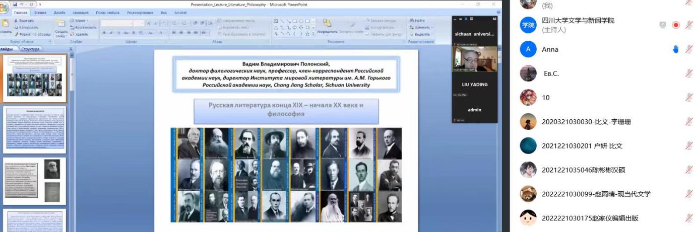 2022年12月8日下午两点至五点,俄罗斯科学院高尔基世界文学研究所所长В. В. 波隆斯基教授应寸止挑战