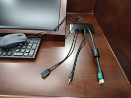 讲台上和第一排的HDMI线、音频输入线