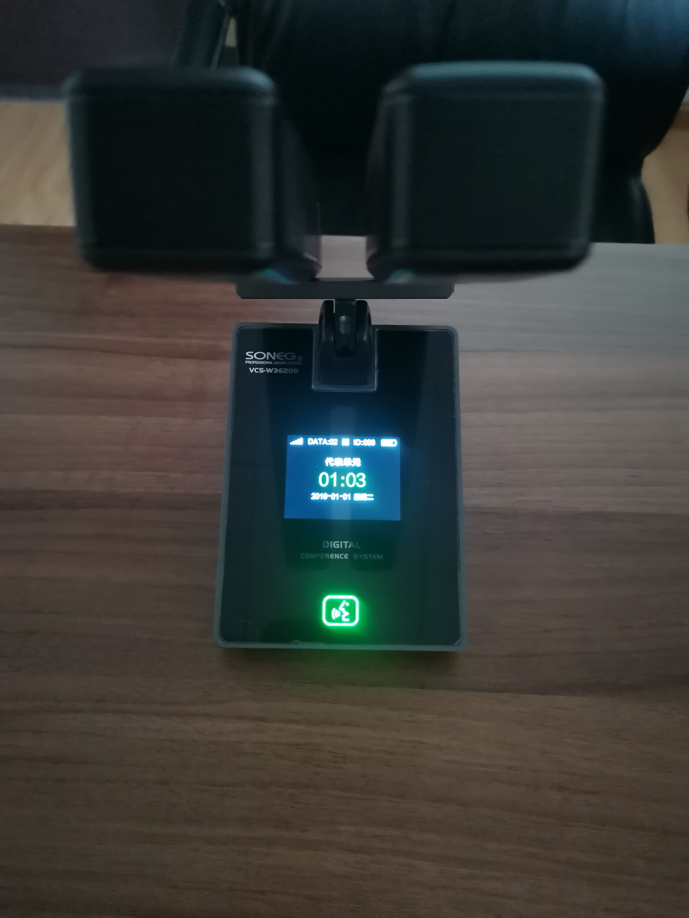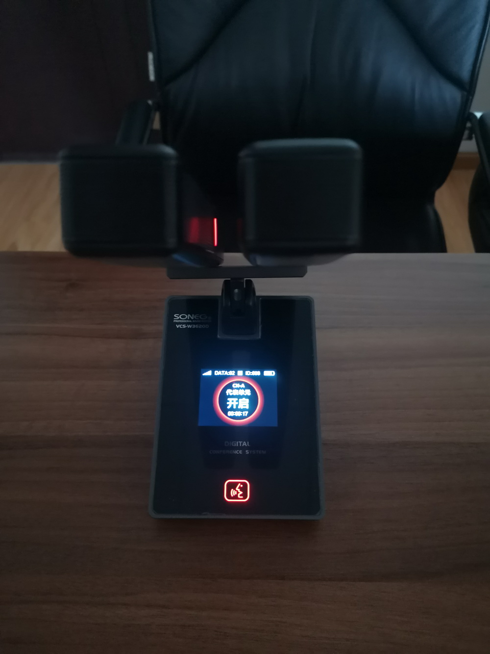 会议话筒:触摸按下话筒上开关位置变为绿色时,话筒即为打开状态,再触摸下变为红色即为静音状态。